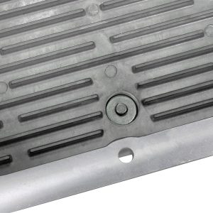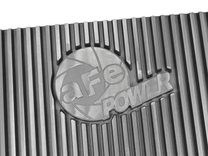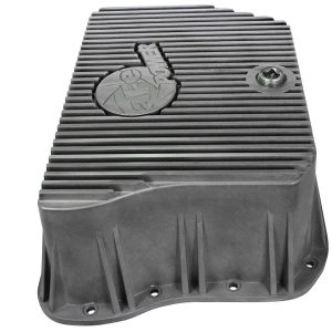 aFe Powers new deep transmission pan brings performance engineering to the protection of your trucks transmission. This transmission pan has additional capacity for 3 to 4 more quarts over stock at the factory line, a magnetic drain plug and a 1/8″ NPT port for your temperature sensor. Built-in internal and external fins transfer heat from the fluid to the outside air for maximum cooling. T his transmission pan is constructed out of durable die-cast A380 aluminum with reinforced ribs and a wrinkle black powder-coating for maximum strength and styling.