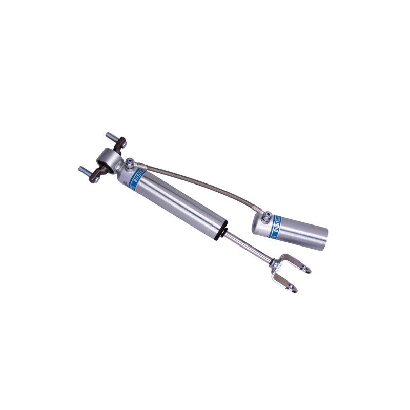 Bilstein B8 5160 remote reservoir shock absorbers are designed as a direct fit solution for lifted trucks and SUV’s. The remote reservoir will offer increased cooling capacity and wheel travel to optimize overall performance compared to a traditional shock absorber. These shock absorbers feature a monotube design for consistent fade free performance and utilize velocity sensitive digressive valve settings which are tuned for each specific application. Each shock absorber is fitted with a unique 360 degree swivel banjo hose fitting, providing a clean, low profile installation. B8 5160 remote reservoir shock absorbers will increase overall durability of your vehicle allowing you to conquer the harshest of off-road environments.